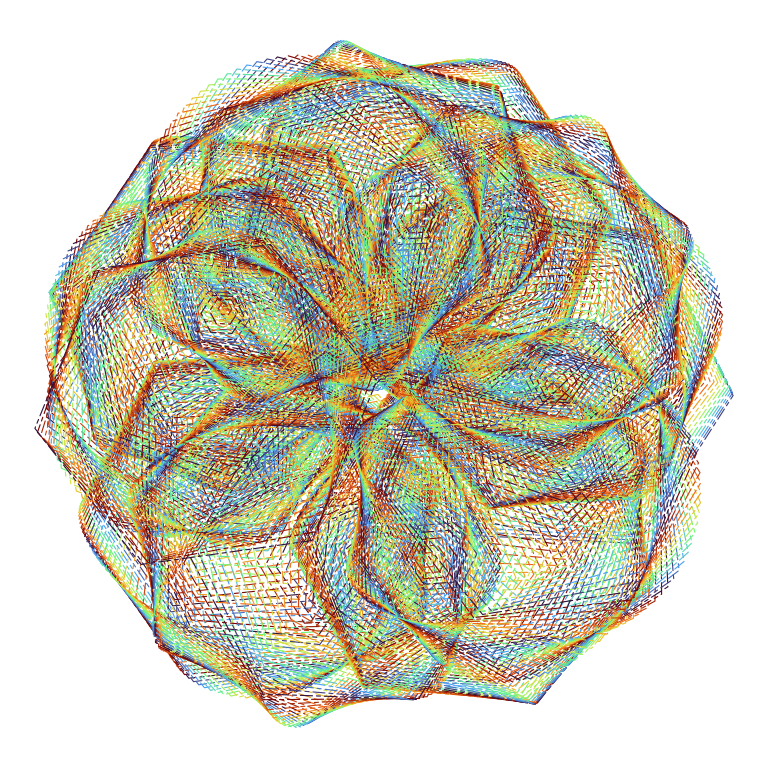 angle = t, color = t, radius = 1:s %% 500