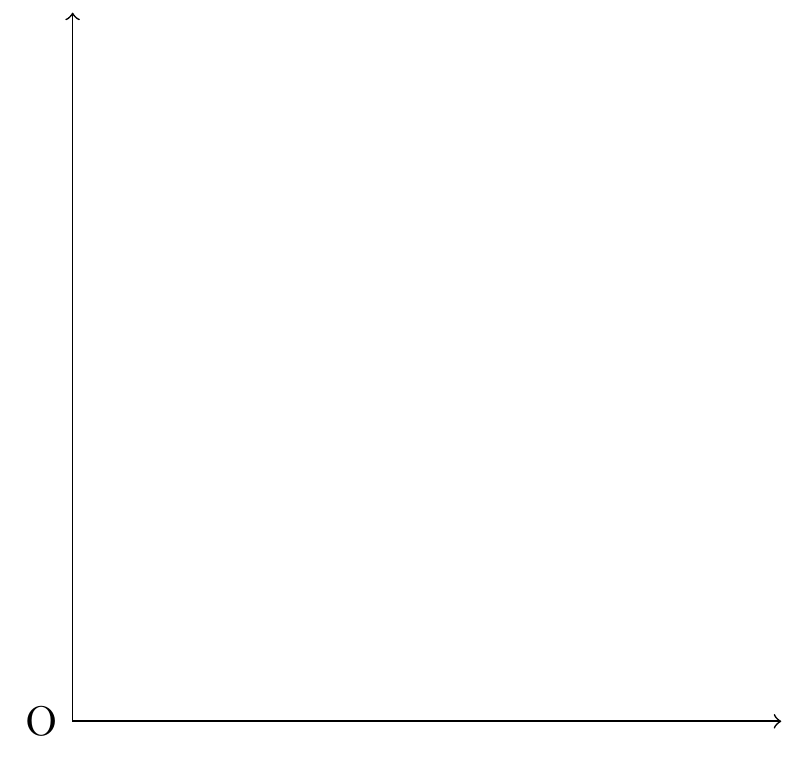 \draw[<->] (6,0) -- (0,0) node[left]{O} -- (0,6);